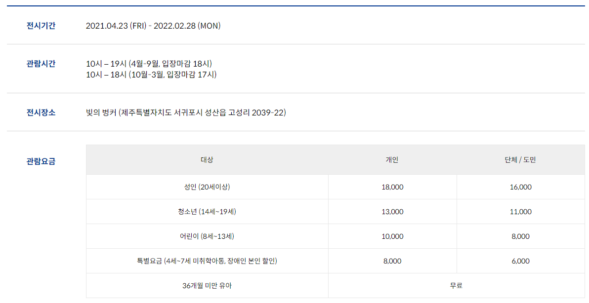 - 성산읍에 위치한 빛의벙커가 재오픈하였습니다. 4월 40일까지 10% 할인 행사를 한다고 합니다.