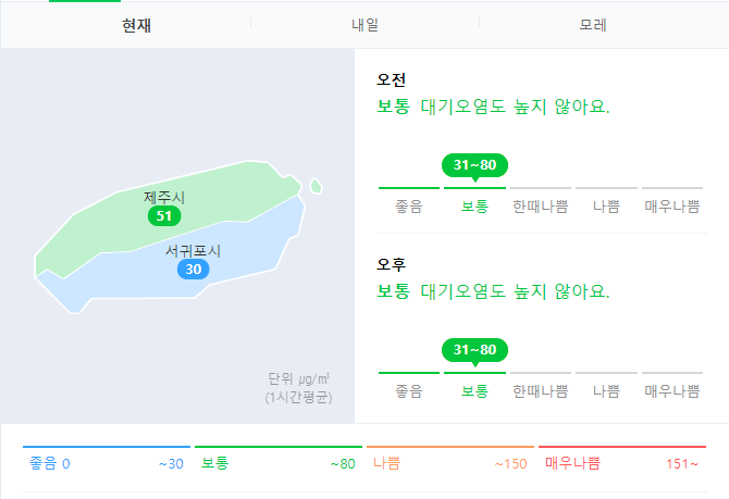 - 미세먼지 농도도 나쁘지 않습니다. 다만, 수요일부터 안좋아진다고 예보되어 있네요.
