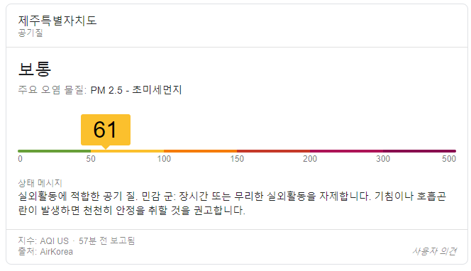 - 현재 미세먼지 수치는 보통 수준을 보이고 있으나, 계속 안좋아질 것으로 예상합니다.