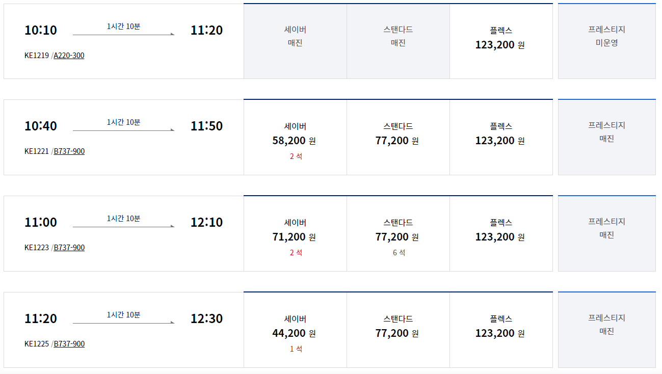 3. 제주도 항공권 및 렌터카 정보(※ 항공권은 대한항공 기준입니다.)