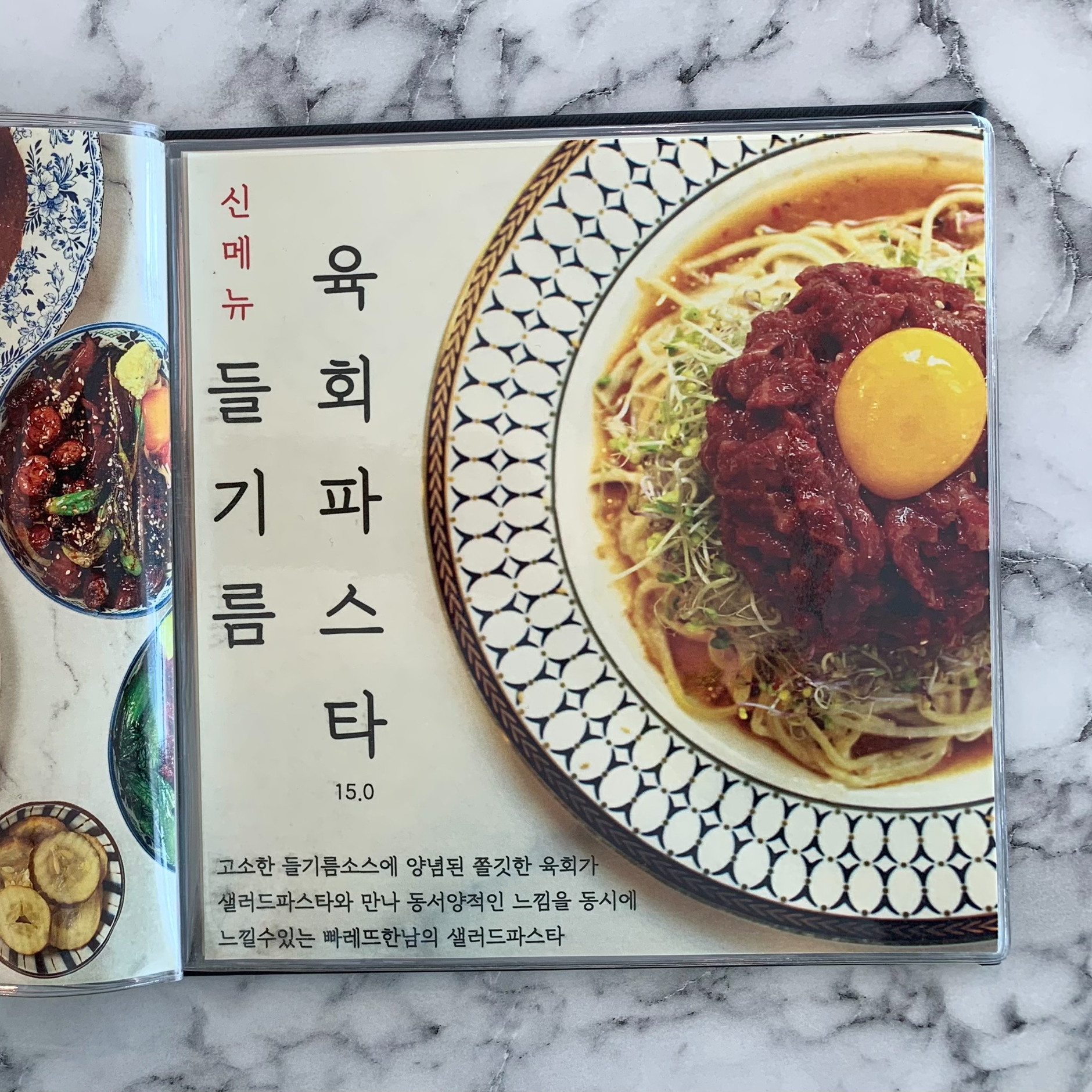 참고로 각 테이블마다 메뉴들을 맛있게 먹는 팁이 적혀 있으니 꼭 읽어보시길 바라요! 개인적으로 육회 파스타를 먹어보고 싶어서 아무래도 다음에 한 번 더 가야겠어요!