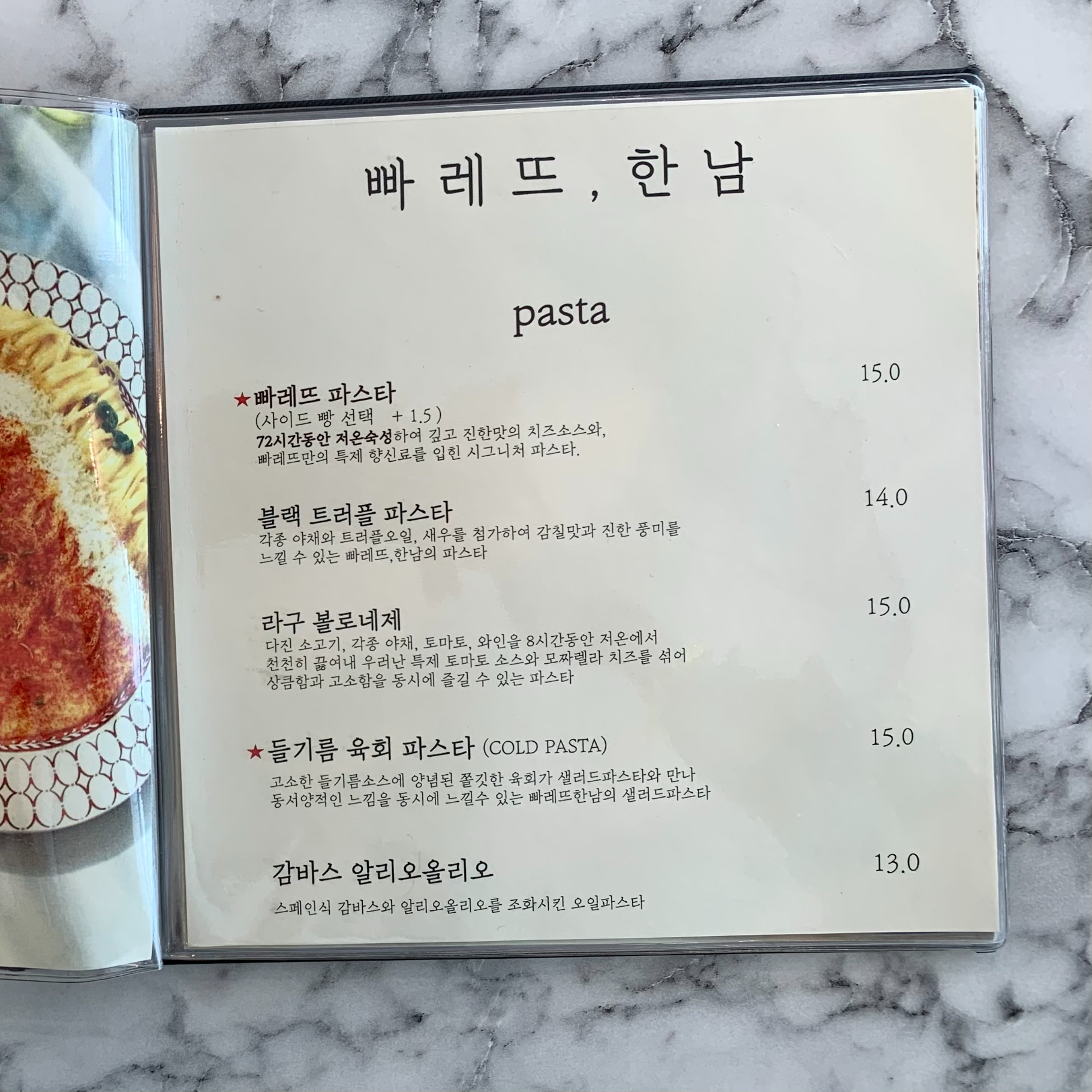 빠레뜨 파스타에 들어가는 소스는 72시간 동안 저온 숙성한 치즈 소스라고 합니다. 어쩐지... 계속 손이 가더라고요. ㅎㅎ