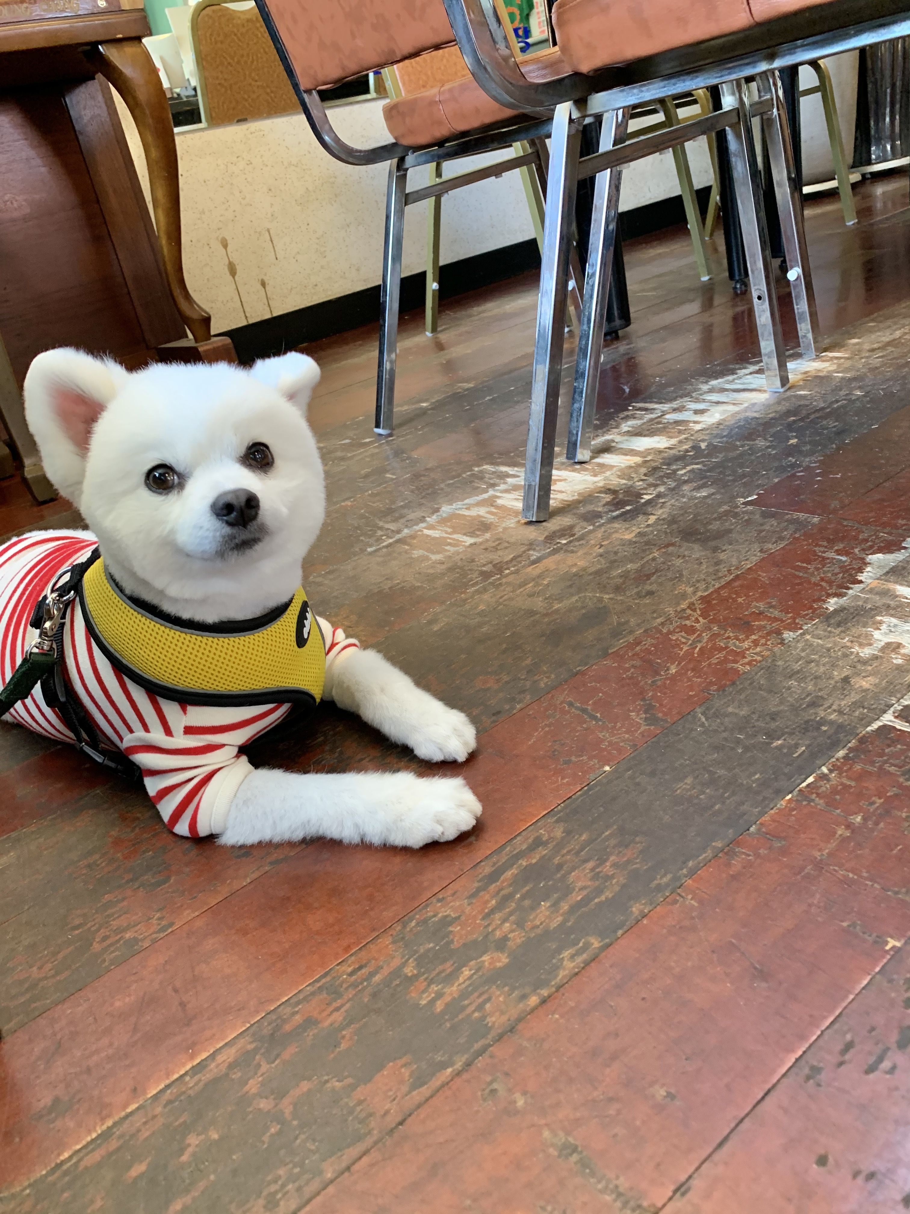 우리집 강아지 구름이는 저희 부부가 식사하는 동안에 조용하게 바닥에서 잘 기다려줬어요!