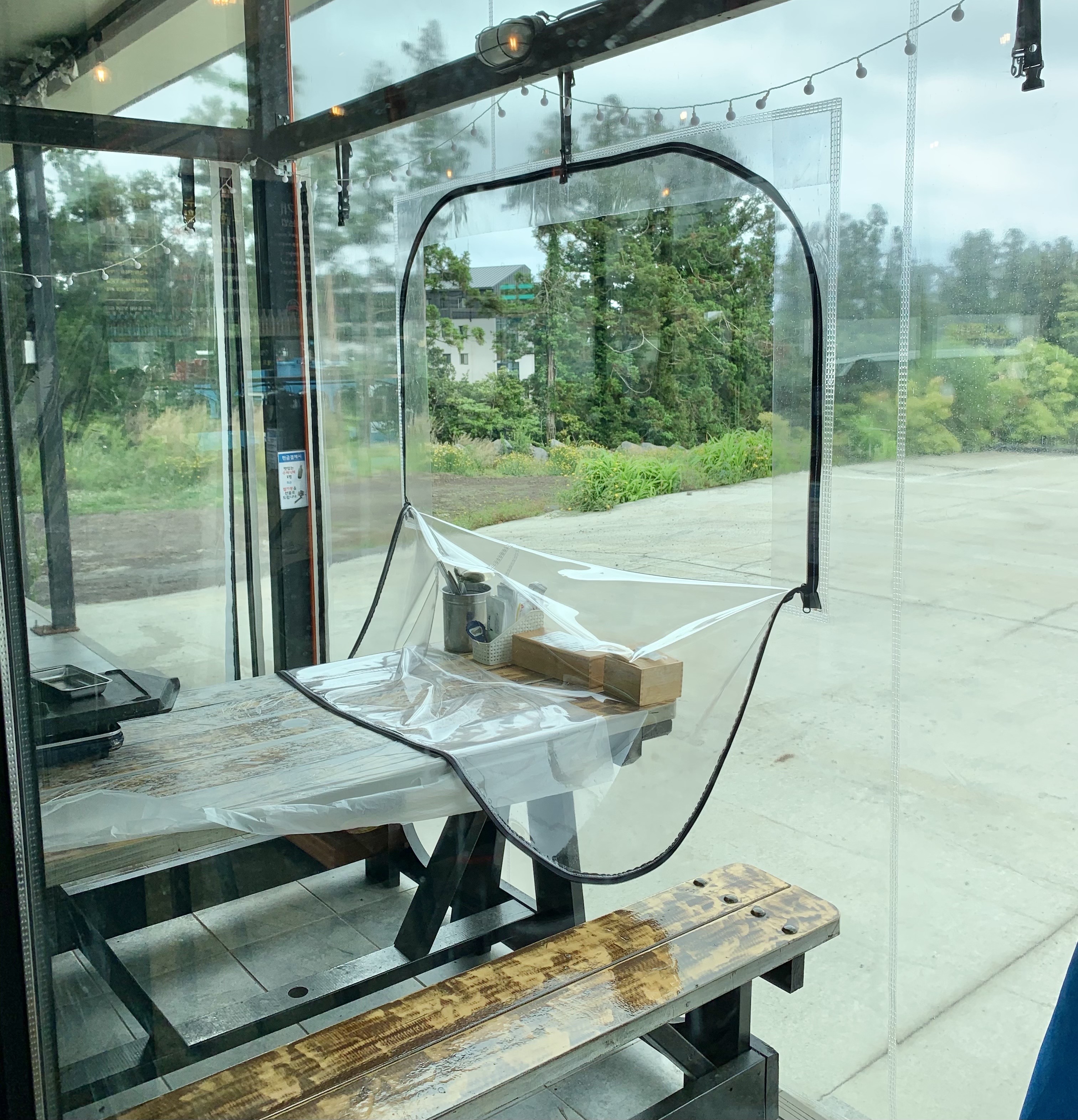실내는 아니고 건물 뒷편에 투명 천막으로 별도의 공간을 마련했더라고요.