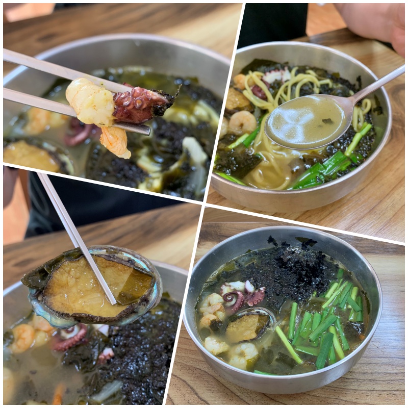 세 번째로 감동받은 것은 국물 맛!!! 그리고 국수에 넘치도록 담아주신 재료들이에요! 특히, 해물국수에는 전복과 문어가 있어서 가뜩이나 쫄깃한 면에 더 쫄깃한 식감을 불어넣었고요.