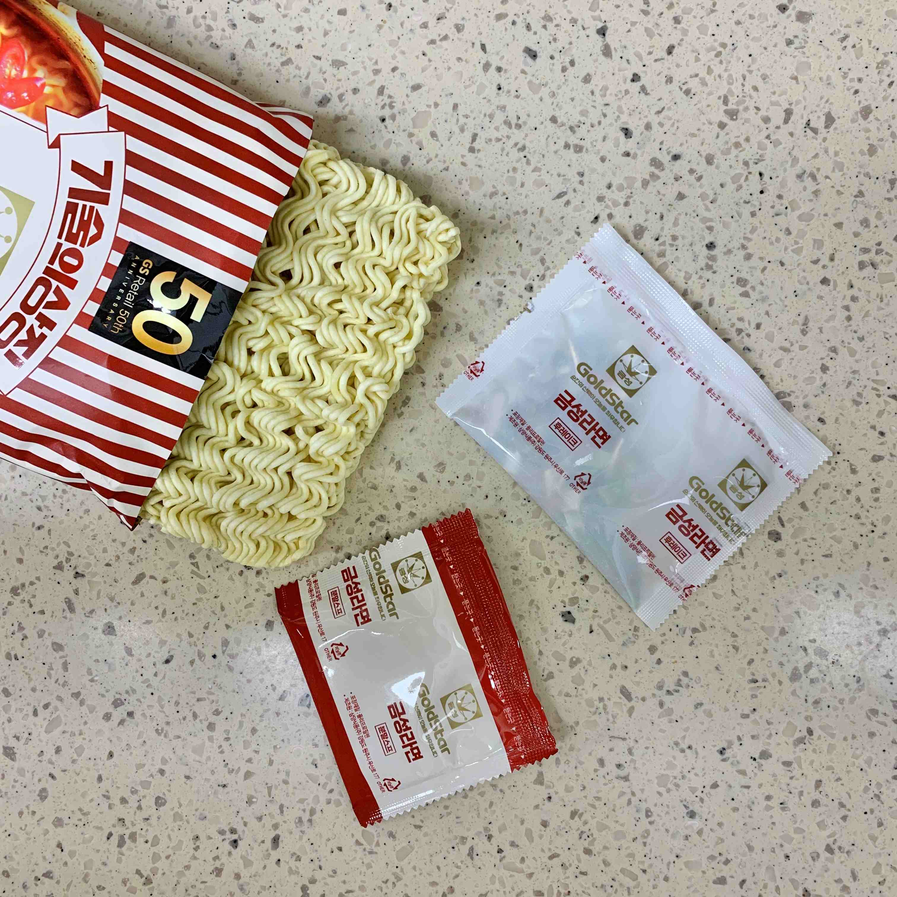 건더기 스프 1개, 분말 스프 1개, 라면 1개.