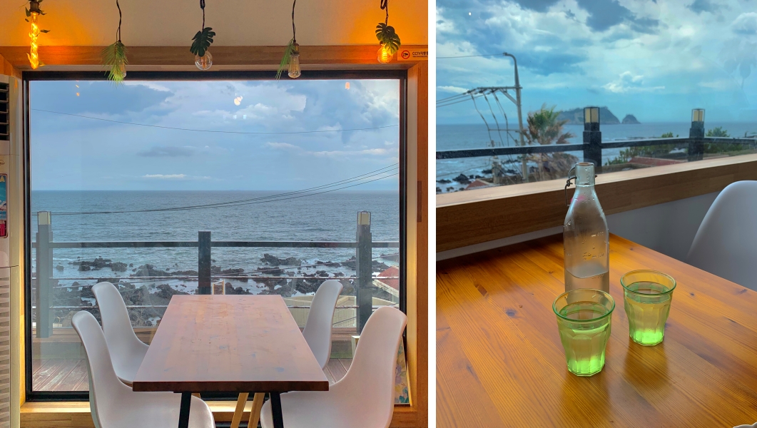 그리고 역시 위치가 위치인지라 테이블에 앉아서 바라보는 바다 뷰가 정말 압권입니다.