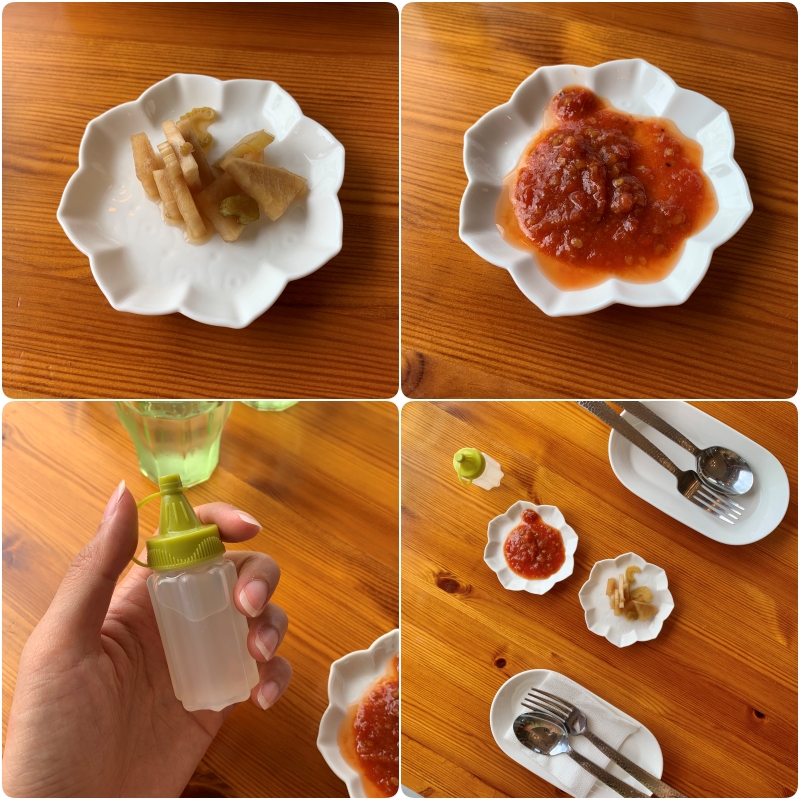 만약 조금 매운맛을 보태고 싶으시면 기본 찬으로 나왔던 붉은 소스를 살짝 찍어 드시면