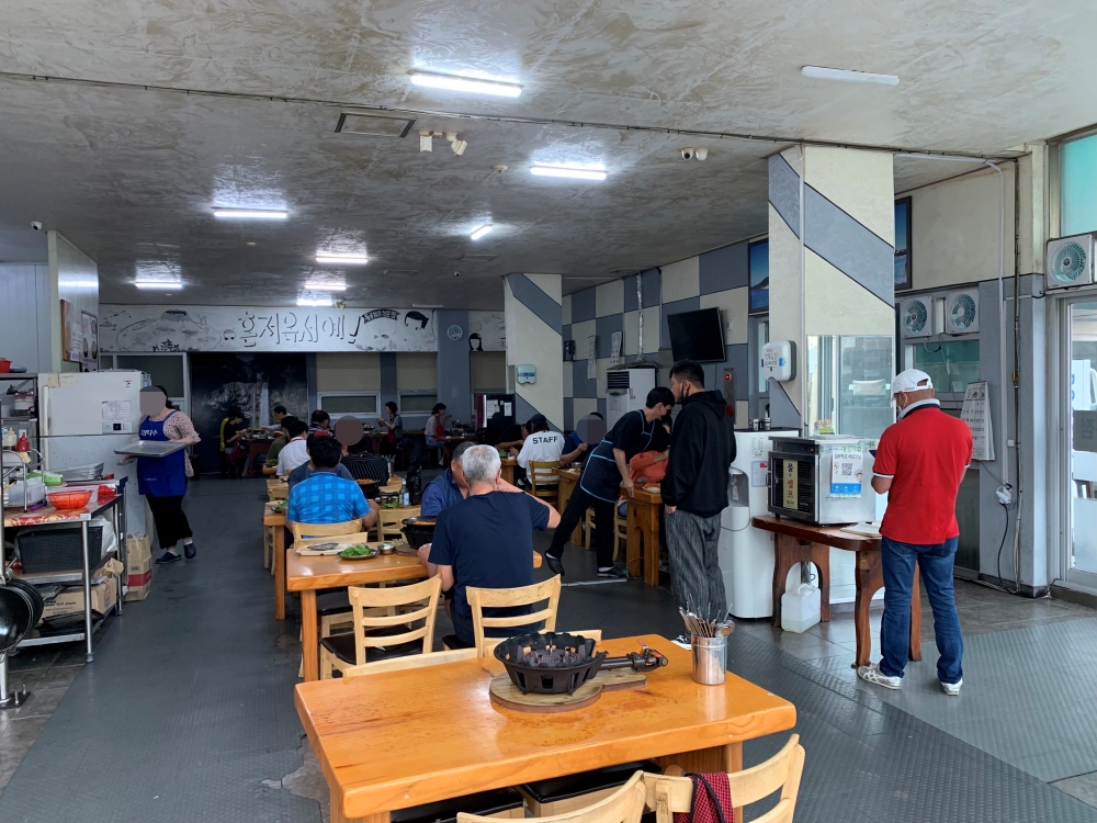 제가 용이식당을 방문했던 날은 비가 오는 일요일 오후 1시 10분이었습니다. 점심시간이 지난 시간이라서 손님이 많이 없을 줄 알았는데 역시 맛집은 맛집인가 봅니다. 빈 테이블이 거의 없었습니다. 하지만 동성식당과 조금 다른 부분은 동성식당은 거의 100% 제주도민들만 찾는 식당이었다면 용이식당은 관광객들도 꽤 눈에 보였습니다. 일단 위치적으로도 관광객들이 오기에 편한 곳이라서 그런 듯합니다.