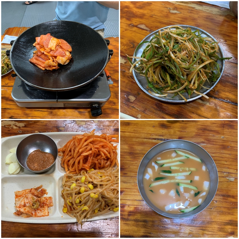 동성식당 포스팅 편에도 말씀은 드렸지만 동성식당 포스팅을 안 보신 분들을 위해 다시 한번 설명드리면 육지에서는 보통 두루치기와 제육볶음을 잘 구별을 안 하는데요. 제주도에서 두루치기는 위 사진처럼 고기보다 야채가 훨씬 많습니다. 야채무침에는 파무침과 무생채, 콩나물무침 이렇게 3가지 종류가 들어가는데요. 여기에다가 밑반찬으로 나온 김치까지 넣어서 한 번에 볶아서 먹는 것이 제주도식 두루치기입니다.