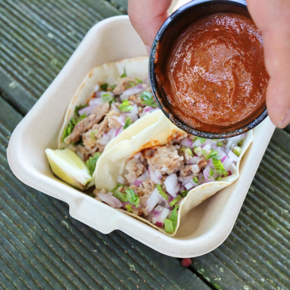 포장 용기 안에는 타코 2피스가 들어 있었으며, 구석에 라임 조각이 있었습니다. 그리고 수제 타바스코 소스는 별도로 포장을 해서 넣어주셨습니다.