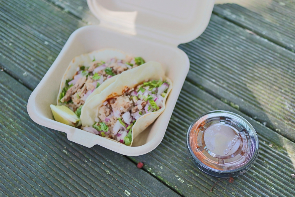 저희는 까르니따스 타코를 테이크 아웃해서 밖에서 먹었습니다.