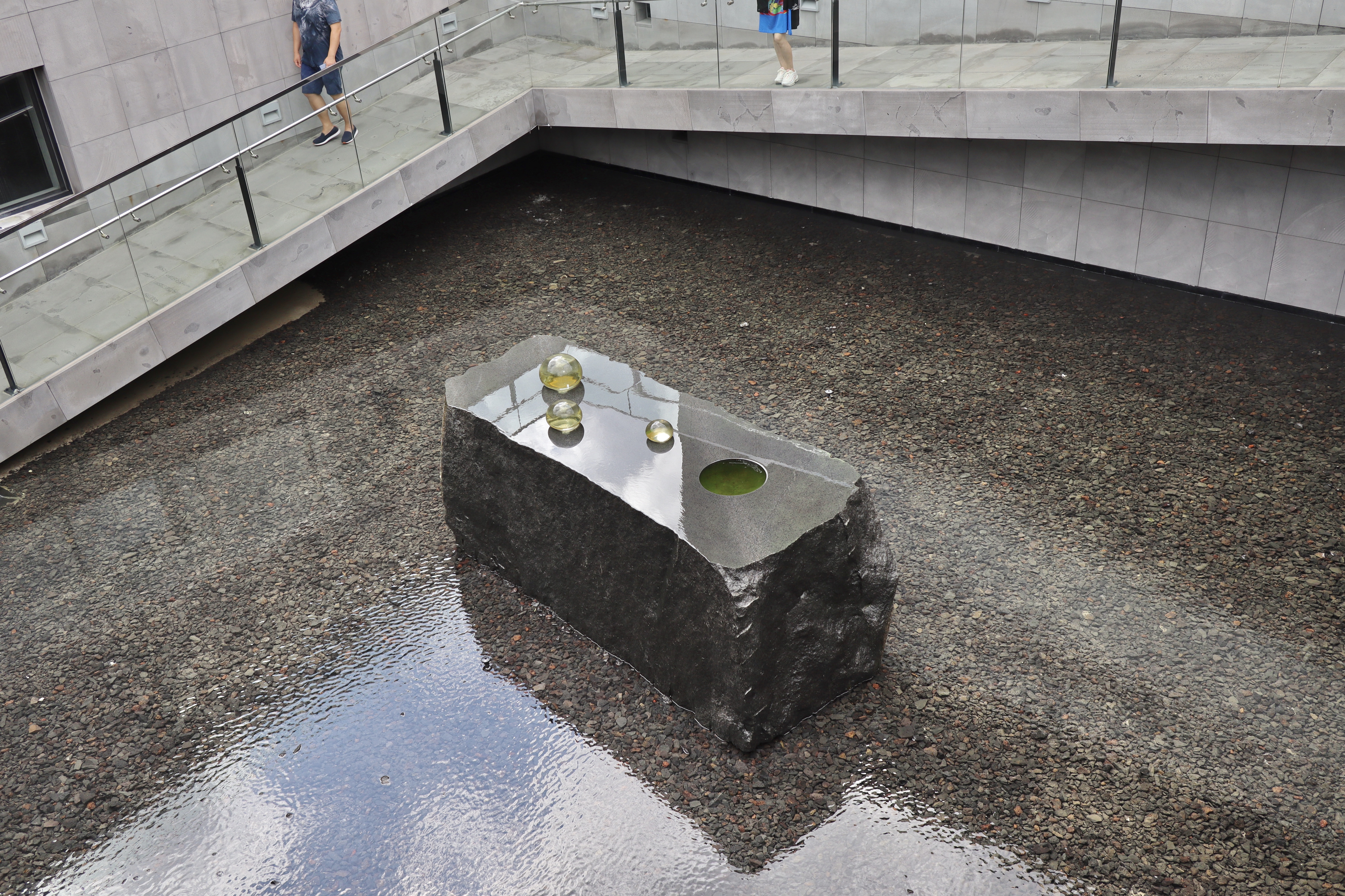 또한 미술관 중앙에 "빛의 중정"이라고 불리는 분수대가 있습니다. 분수대 가운데 물방울 3개가 있으며, 특정 시간 단위(10분)로 분수에서 나오는 물줄기가 뿜어져 나오며 빛과 반사되어 또 하나의 작품을 구성합니다.