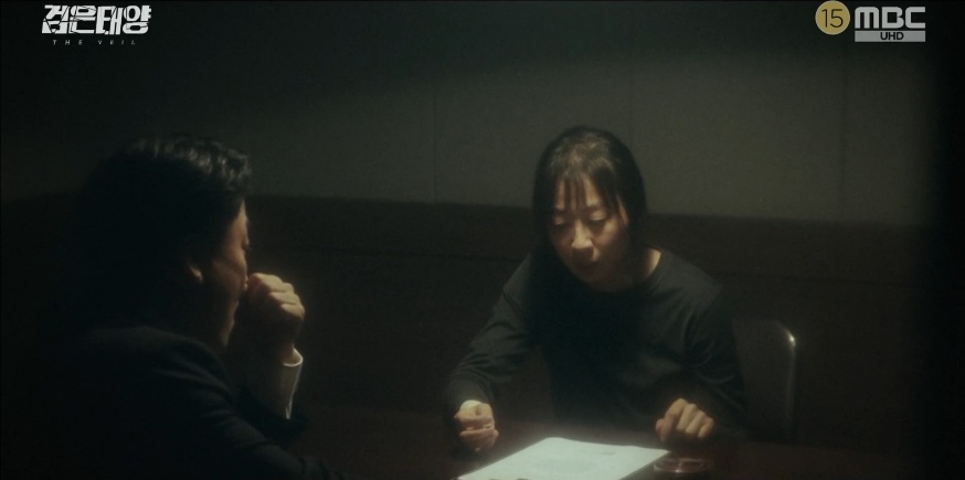 4화 마지막 성균에게서 걸려온 전화를 통해 단동에서 보낸 마지막 비상연락을 받은 사람이 서수연이라는 사실을 알게된 한지혁은 바로 서수연을 제압하면서 누구의 사주를 받았는지 권총을 머리에 겨누면서까지 강력하게 심문하게 된다.