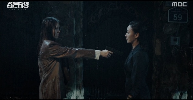 한지혁의 회유에 실패한 이인환 차장은 유제이를 끌고 와 유제이의 머리에 총을 겨누며 한지혁의 총을 내려놓을 것을 협박한다.