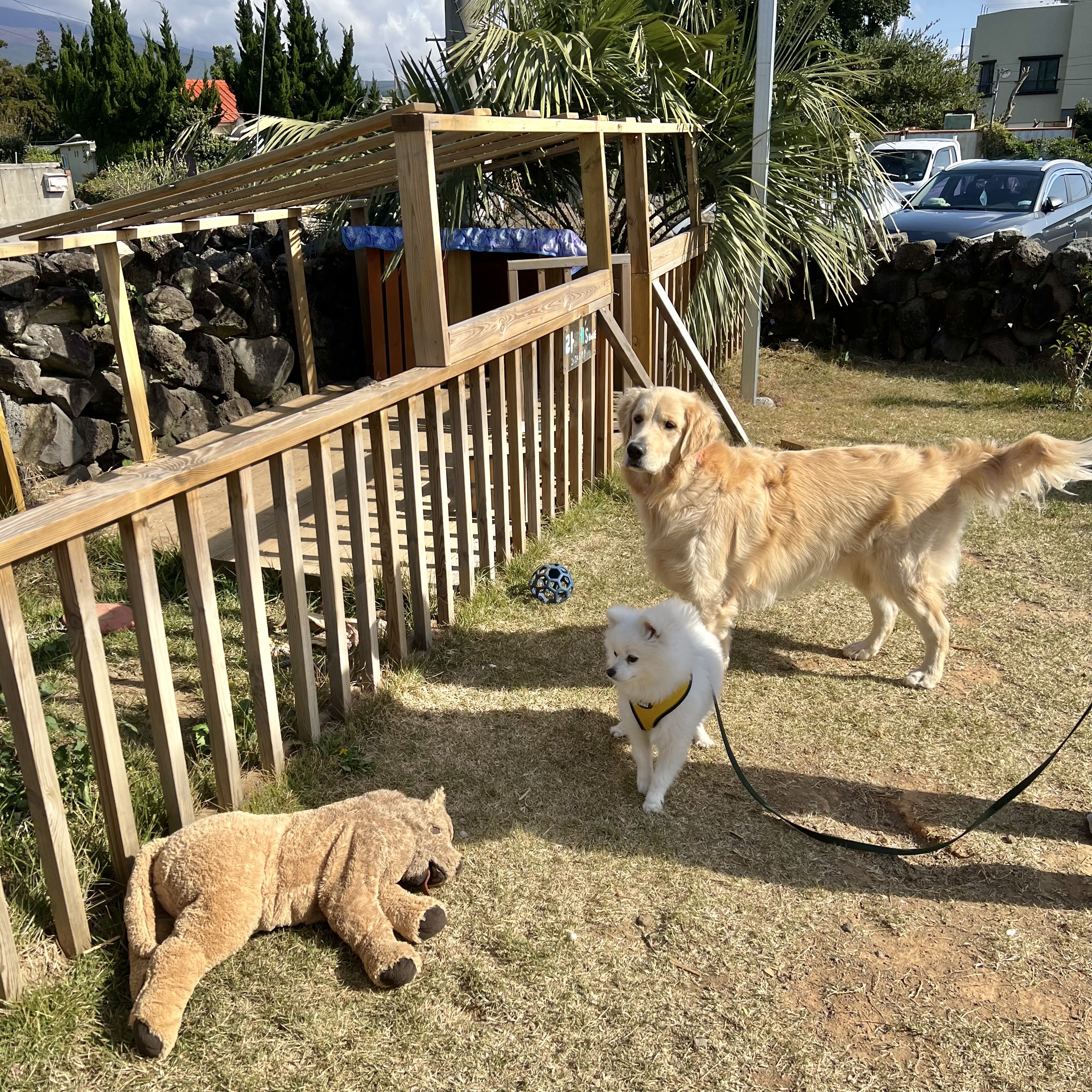 저희가 이번년도 1월에 방문했을 때는 카페 건물 앞에 카페 주인이 키우는 듯 한 레트리버의 생활공간이 있었는데요.