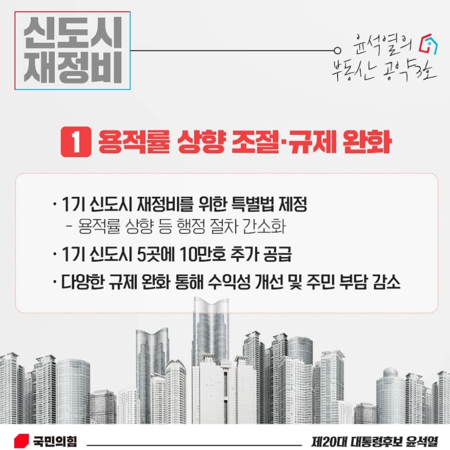 위 이미지에서도 보시는 바와 같이 이제 곧 신정부를 이끌 윤석열 당선인의 공약에서도 1기 신도시특별법을 제정하겠다는 공약이 니왔고 사실상 윤석열 후보가 당선되자마자 1기신도시 부동산 시장은 다시 들끓기 시작했습니다. 당선이 확정된 이후 현재까지 2달도 채 되지 않았는데 일산의 경우에는 시세에 1억이 넘는 금액에도 매매가 되는 상황이 발생하기도 했고, 매물이 계속 회수되는 등 부동산 시장이 너무 민감하게 반응하기 시작했습니다.