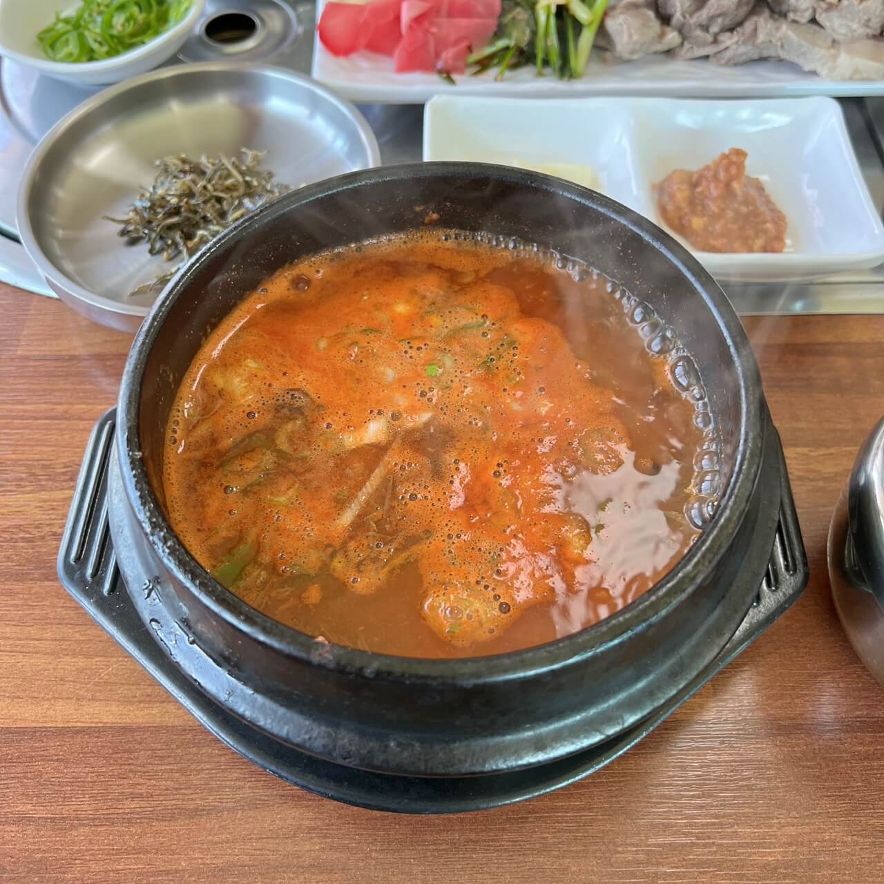 메뉴는 다양하지만 저는 고사리육개장과 수육을 추천합니다. 제주식 수육을 주문하면 수육과 황태초무침, 고사리육개장이 세트로 나오지만 저희는 고사리육개장 보통맛, 고사리육개장 얼큰한맛, 접시수육 하나를 주문했어요.