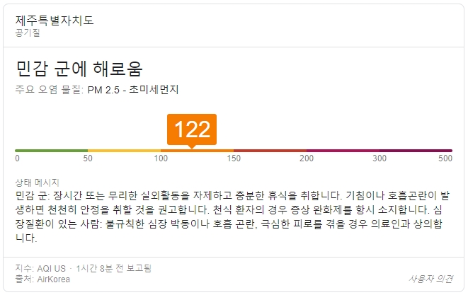 - 미세먼지 나쁨(무리한 실외활동을 자제)