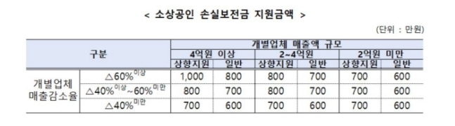 [소상공인 손실보전금 지급 대상]
