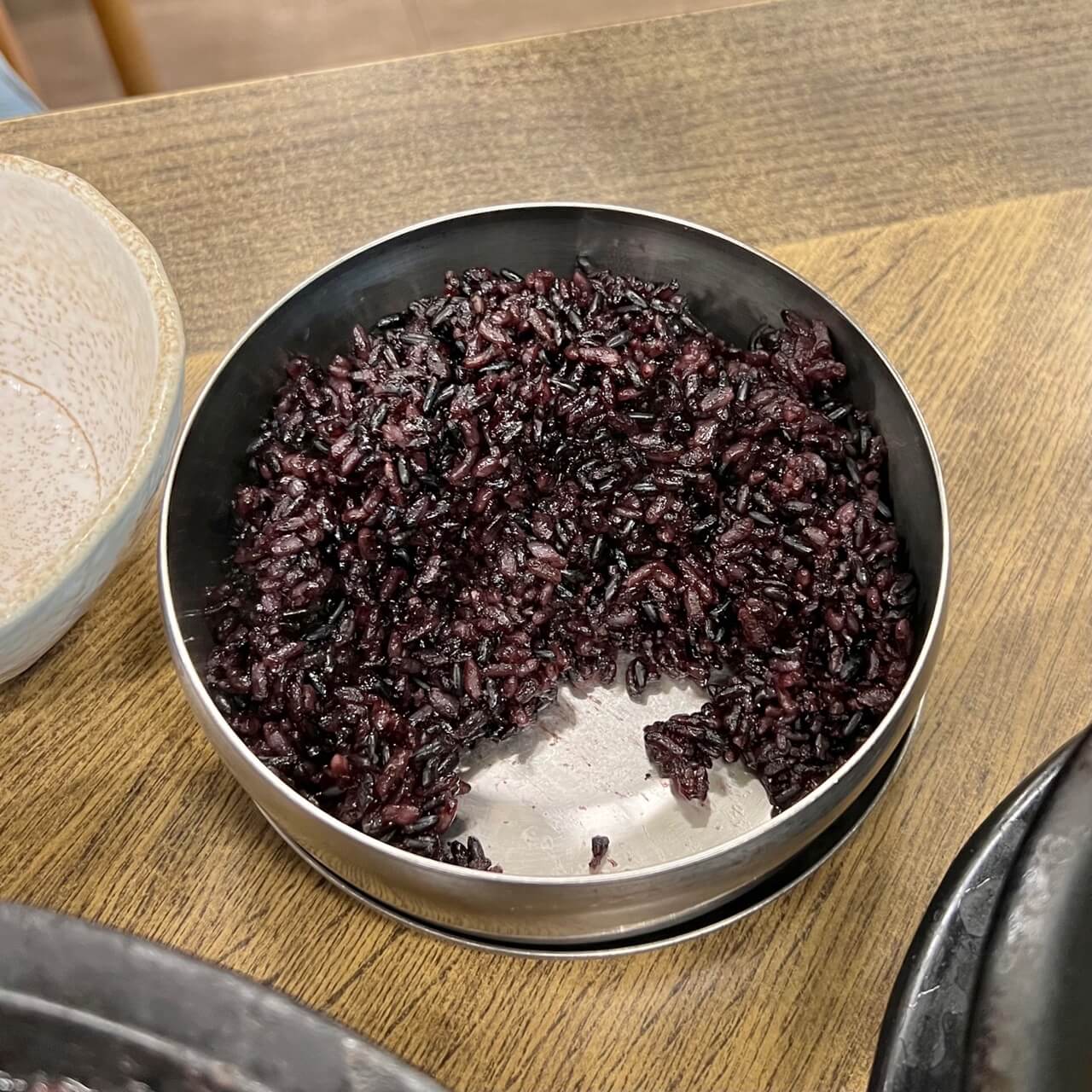 흑미를 섞어 까만색의 밥인데 국물과 함께 말아서 먹으면 한 공기 뚝딱! 처음 음식이 나왔을 때는 양이 적을 줄 알았는데 다 먹으면 속이 부담스럽지도 않고, 배불러서 정말 잘 먹었다는 생각이 절로 납니다. 이날 몸에 좋은 재료는 다 먹고 온 느낌이었어요.