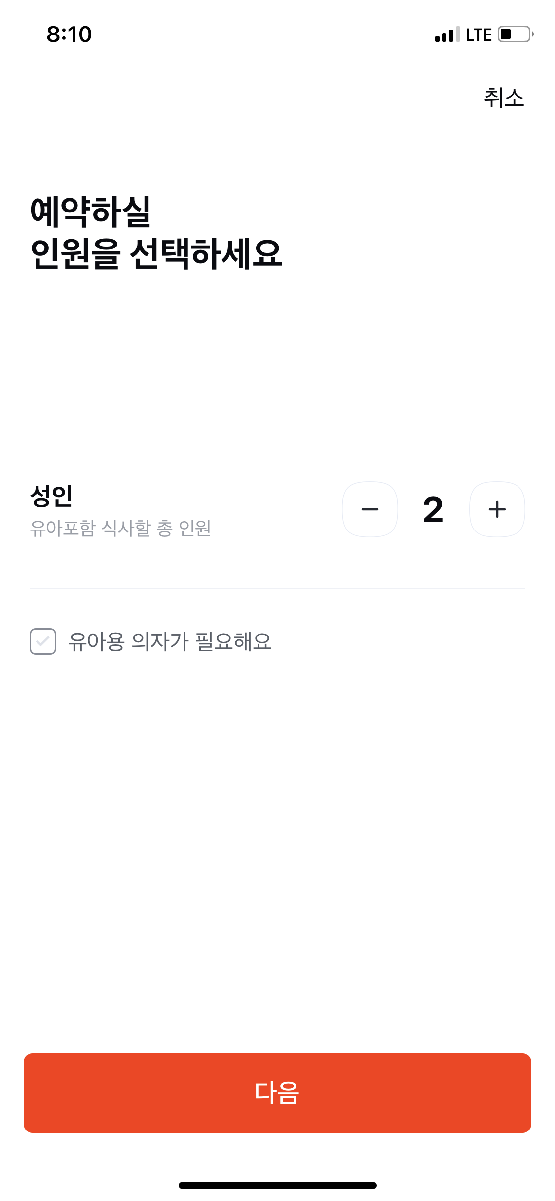 1. 원하는 매장을 선택한 다음 총 인원을 선택합니다.