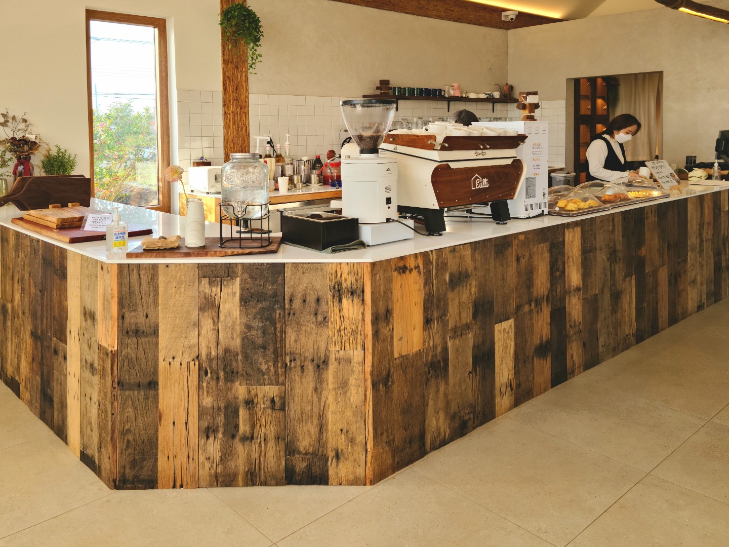 그리고 바닥 전체는 옛날 학교에서 쓰이던 나무 복도 목재를 사용해서