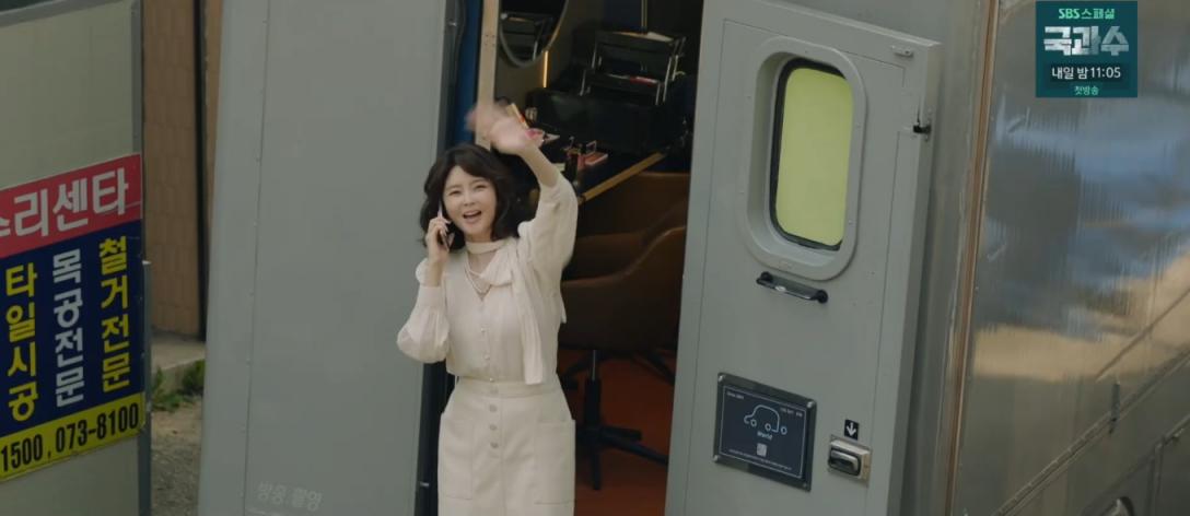 그리고 이때 백마리의 엄마에게 연락이 오는데 역시 부잣집 스케일답게 분장 버스를 대여해서 사무실 앞까지 가져온다.