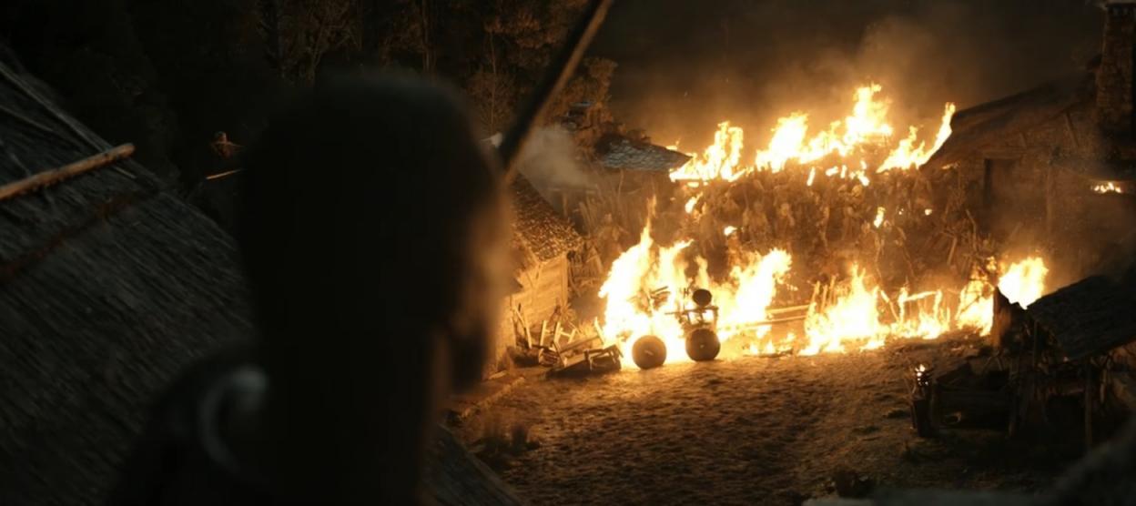 밤이 되자 남부인들의 마을 근처에 여러 횃불들이 보이기 시작했고 그 횃불들은 마을의 다리를 넘어 점점 마을의 안쪽으로 진군하기 시작했다. 브론윈과 아론디르는 미리 설치해뒀던 화염 함정을 이용해 그들을 마을 한가운데 고립시켰고 양 쪽 지붕에서 남부인들이 화살 세례를 쏟아붓는다.