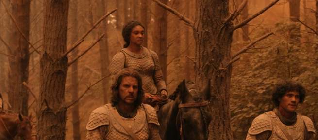 그리고 미리엘 여왕이 심상치가 않다. 바로 눈앞에 큰 나뭇가지가 스치는데도 불구하고 전혀 피하지 않는다. 알고 보니 그녀는 화산재가 너무 많이 눈에 들어가 시력을 잃은 것 같다. 그러나 여왕인 그녀는 이 사실을 숨기고 엘렌딜에게 야영지까지 티 내지 말고 행군할 것을 명령한다.