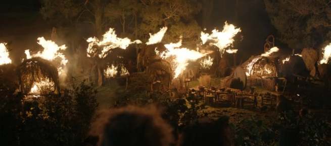 거대한 화산 폭발이 멈추고 마을은 쑥대밭이 된다. 갈라드리엘은 화산 폭발에 중심에 휩싸였지만 정신을 잃었을 뿐 다행히 무사하다. 마을의 주변을 둘러보던 갈라드리엘은 온통 화염과 화산재로 뒤덮인 마을에서 본인이 아는 사람들 이름을 불러보며 생존자를 찾아보는데 여기서 세오를 찾게 되고 세오와 함께 동행을 하게 된다.