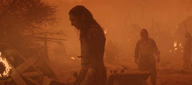 이 정체불명의 일행들은 밤낮으로 이방인의 행적을 찾으면서 이방인을 추적하고 있는 듯하다. 그리고 이때 노리가 나타나 이방인은 다른 곳으로 갔다며 정체불명의 일행들을 다른 길로 인도하려고 하는데 노리의 아버지가 그들에게 횃불을 들이대면서 노리를 보호하려고 한다. 하지만 이들의 리더는 손으로 불을 끄고 입바람으로 털발족들의 마을을 모두 불태워버린다.